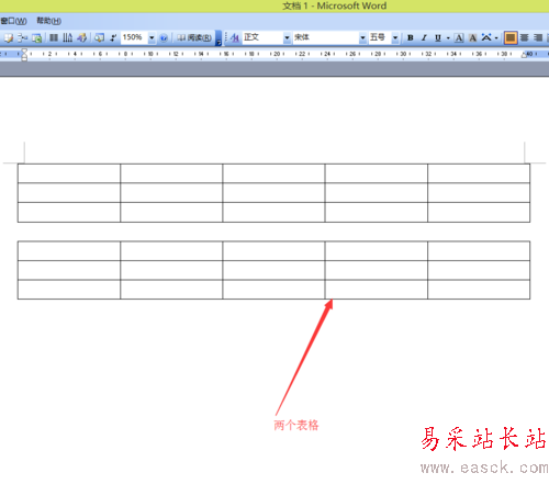 如圖1:這是一個6行5列的表格,那么如何把它拆分成2個3行5列的表格呢?操作:把光標定到第4行第1列表格處——表格——拆分表格。它就會拆成兩個表格,如圖2: