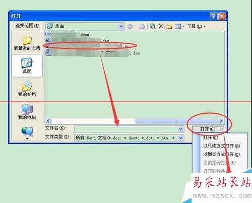 7、在“打開”的下拉有個“打開并修復”,點擊修復文檔。