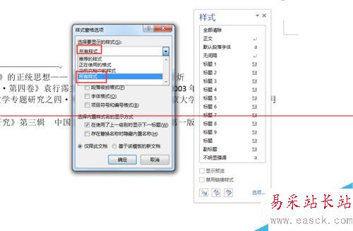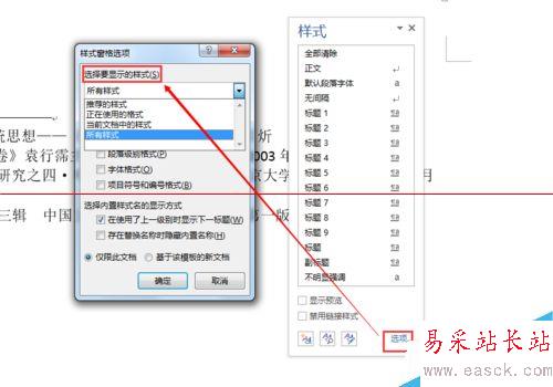 4、然后界面會彈出一個【樣式】對話框,在對話框中點擊【選項】按鈕,接著會出現一個篇【樣式窗格選項】對話框