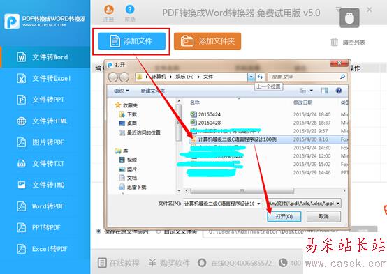 第二步,點擊“添加文件”按鈕,在跳出的窗口中找到要轉(zhuǎn)換的pdf,點選后點擊“打開”按鈕將其添加到軟件中。大家也可以將配電房文件拖拽到軟件上方進行添加。