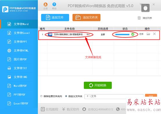 第四步,點擊軟件右下方的“開始轉(zhuǎn)換”按鈕對文件進行轉(zhuǎn)換,軟件轉(zhuǎn)換的速度非常快,用戶等待片刻即可。轉(zhuǎn)換完成后會顯示轉(zhuǎn)換完成提示,這時用戶就可以在設(shè)置的存儲位置找到轉(zhuǎn)換完成的word文檔。