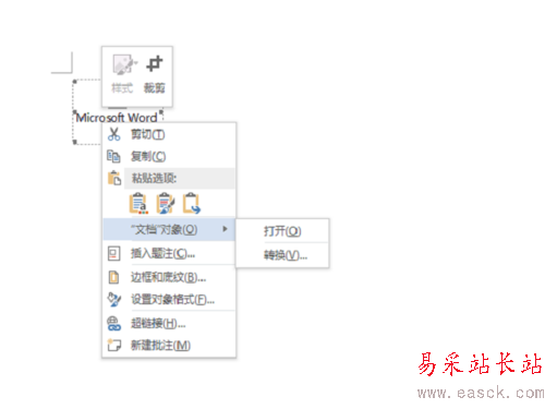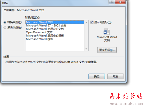 下一步直接保存退出就行了;如果一定要完美地看到文件圖標變成段落和文字,在文件圖標上單擊右鍵,選擇<文檔對象>-<轉換>