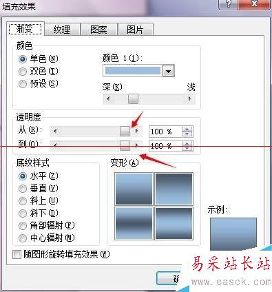 2、在第六步中,必須設(shè)置兩項(xiàng)的透明度,設(shè)置一項(xiàng)是不行的。