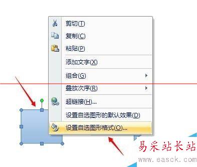 2、如果要去掉這兩個(gè)圖形里的顏色,是有些小技巧的,我一開(kāi)始也很久去不掉,后來(lái)才發(fā)現(xiàn)。首先選中圖形,右擊圖形,在菜單中選擇 設(shè)置自選圖形的格式