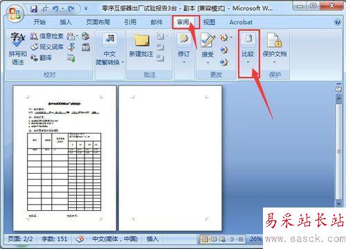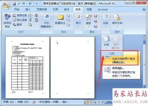 我們在打開的初始WORD文檔時,在菜單欄選擇審閱,在相應的工具欄中找到比較