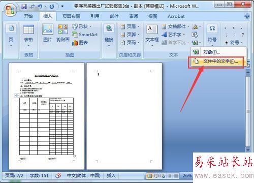選中對象中的下拉項插入文件中的文字,雙擊此選項