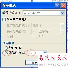 選擇“頁碼”——“設置頁碼格式”,然后會彈出一個對話框,選擇“起始頁碼”并且設置為1