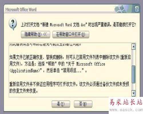以上就是word文檔打開出現(xiàn)"上次打開文檔時嚴重錯誤,是否繼續(xù)打開"的解決方法介紹,希望能對大家有所幫助!