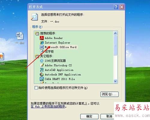 雙擊桌面的Microsoft Word或是程序里面的Microsoft Word,打開后選擇打開你打不開的文檔,這樣也是一個嘗試的好辦法。