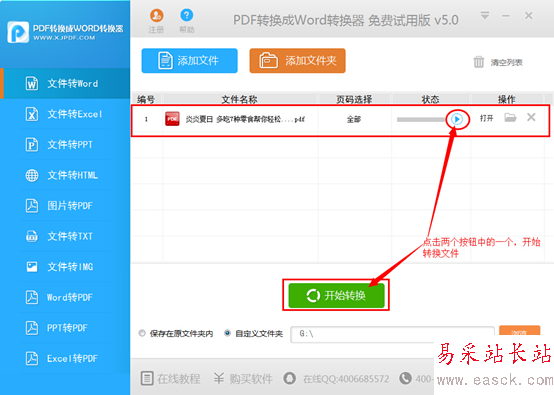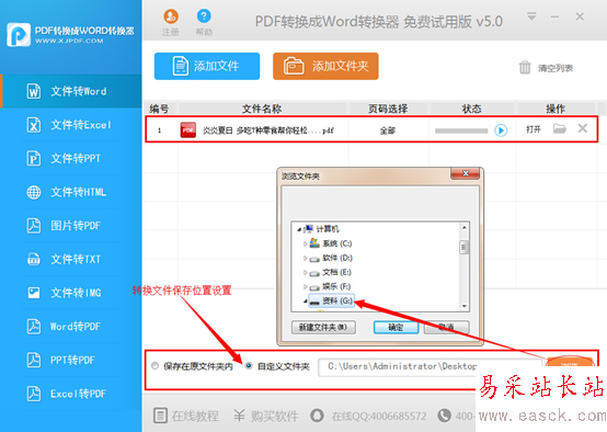 4、設置轉換文件的保存位置,如果選擇“自定義文件夾”,可以通過“瀏覽”按鈕來設定文檔存儲的位置。