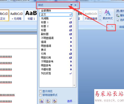 步驟二:在“開始”選項卡中的“樣式”欄中,點擊右下角的“小箭頭”,進入樣式的相關選項卡。