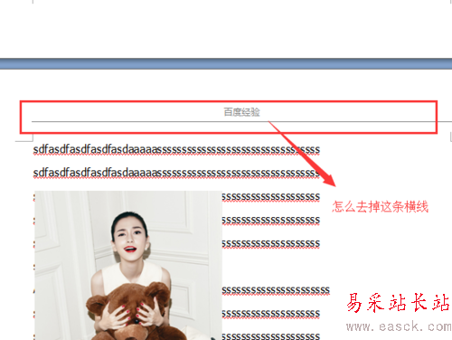 步驟一:打開word文檔,編輯頁眉之后,會發現頁眉的文字下面有一條難看的橫線。