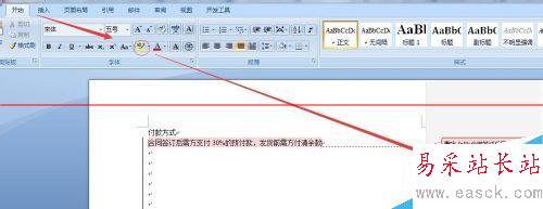 6、最后雙方達(dá)到協(xié)議的批注可以改成一種顏色,如紅色(同時也可以把字體底色改成其他顏色,以突出內(nèi)容,比如黃色),功能區(qū)【開始】-【字體顏色】/【字體底色顏色】