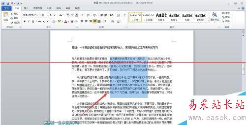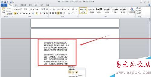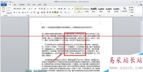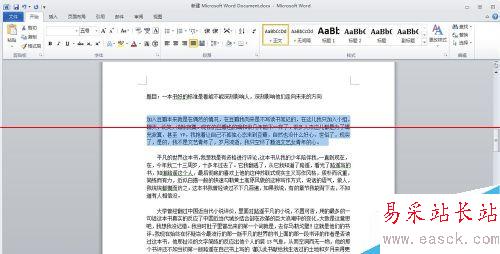 1、首先,我們打開一份word,按住鼠標左鍵不放,拖動光標選中一段文字,如下圖所示。我們會發現,想要選取文字只能夠橫向來選取。