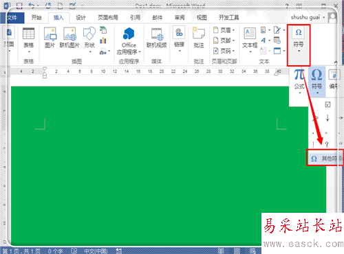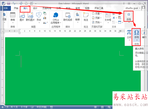 字體安裝之后,就可以使用。打開word文檔,點擊“插入”,然后點擊“符號”(注:這里是word2013,word2007、word2010操作基本一致,word2003操作類似)。
