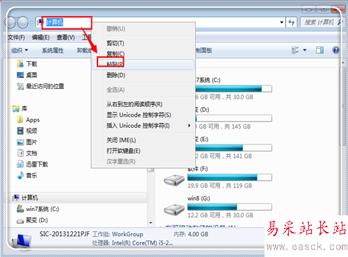 復制引號內內容“C:/WINDOWS/Fonts“,點擊一下上方地址欄,然后使用“ctrl+v”或者是右鍵點擊,選擇“粘貼”,粘貼“C:/WINDOWS/Fonts”。