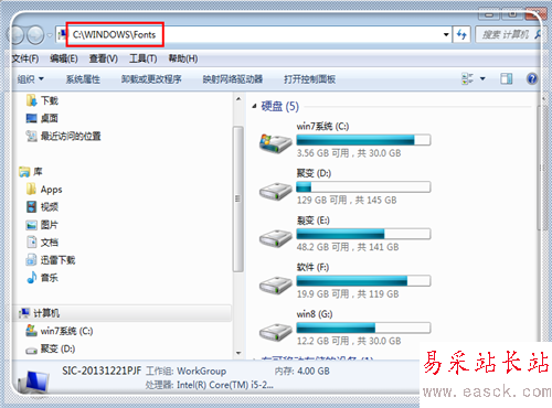 粘貼之后點擊“回車鍵”,進入到windows字體庫中。