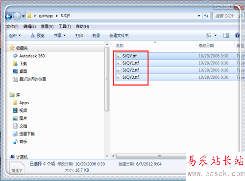 進入之后,找到這里的所有的“SJQY.ttf”,文件,全部選中,使用“ctrl+c”復制這些字體。
