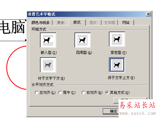 把藝術(shù)漢字的版本設(shè)置“襯于文字上方”,然后拉到所需位置。