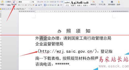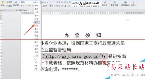4、在經過上述的操作還沒有解決,原來是因為后面的那個鏈接很特殊,必須要顯示在一行里,如果文字大就自動換行了,知道了原因,我們就可以根據需要,選中文字,進行相應的縮小一兩號就可以,如圖所示