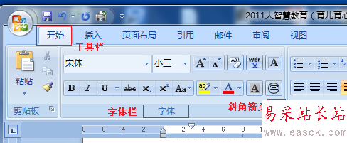 21.2、在word 菜單欄中,點擊【開始】工具欄,找到字體欄。