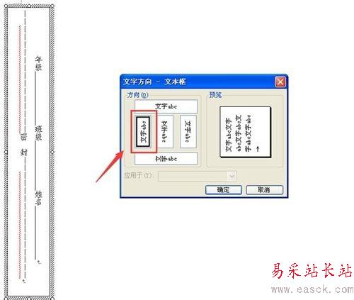 在頁面左側(cè)插入文字框,并輸入年級、班級、姓名等信息以及密封字樣信息。
