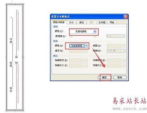 雙擊文本框邊框,設(shè)置文本框填充、文字顏色為“無顏色”。