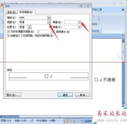 8、在字符間距里,選擇調整“間距”和“磅值”兩項,使他們能縮在一起,如圖所示。
