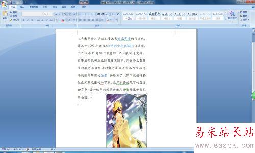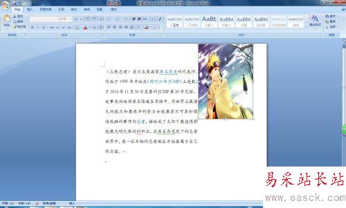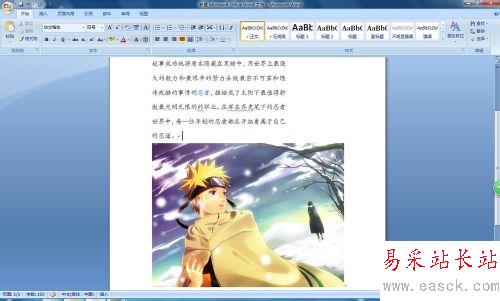 3、我們看到一般都是跟在光標所在的位置插入圖片的,就算調整圖片的打下也很難改變他的位置。插入圖片的效果如下。