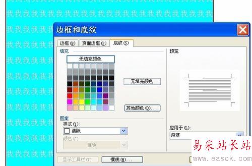 6、再按“Ctrl+A”全選文字,點擊“格式”“邊框和底紋”在彈出的對話框中點擊“底紋”“填充”選擇“無填充顏色”確定,