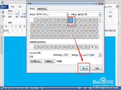 5、這時候插入自己喜歡的帶圈數字。點擊選中,然后點擊“插入”。