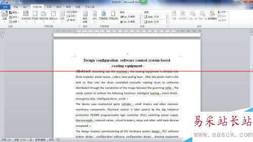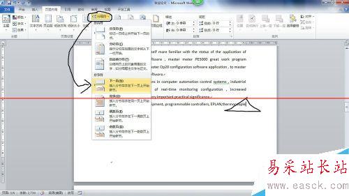 3、在空白頁上輸入英文摘要部分,并將鼠標光標點擊在摘要部分的最后一個字,然后點擊“頁面布局”,再點擊頁面設置組中的“分隔符”找到分節符中的“下一頁”。然后在空白部分輸入正文部分。