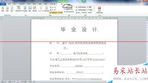 5、在新的頁面中,將鼠標頁面移動到首頁,然后點擊首頁的頁眉,然后將選項組中的“首頁不同”勾選。接著移動到第二頁(中文摘要頁)、第三頁(英文摘要頁)和第四頁(正文頁)并分別在頁眉中點擊,取消“導航”組中的“鏈接到前一條頁眉”使其變為灰色。