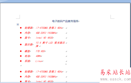 3、設(shè)置海報(bào)內(nèi)容格式。內(nèi)容需要完之后需要設(shè)置字體及段落格式,時(shí)期美觀得體。標(biāo)題我們?cè)O(shè)置成楷體,四號(hào),藍(lán)色。之后我們?cè)O(shè)置下面的文本,選中下面的文本,單擊“開(kāi)始”“段落”“項(xiàng)目符號(hào)”,將文本字體設(shè)置成黑體,紅色,傾斜。