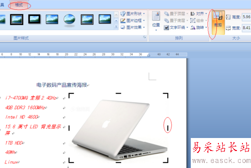 5、我們?cè)O(shè)置圖片的格式。圖片插入后,往往不符合要求,根據(jù)具體情況進(jìn)行格式調(diào)整;首先設(shè)置圖片的大小,圖片周圍可能很多空白區(qū)域,我們單擊“格式”選擇大小里面的“裁剪”按鈕。剪掉四周空白區(qū)域,同樣方法剪掉其他圖片周圍區(qū)域。