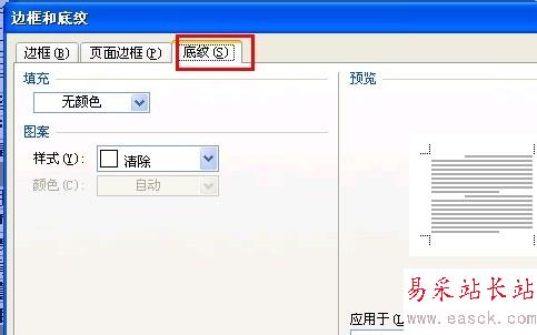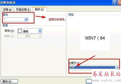 底紋已經去掉了,但是文字的背景還沒有去掉,接下來去掉文字的背景色,操作方法和上面去掉底紋的方法一樣,只是“應用于”文字后,然后點確定就可以了。
