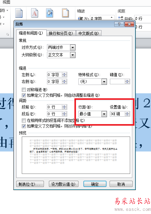 3、然后,我們調整好文本的字體字號,字體盡量要大一點,行距也要大一行。本例中,行距用最小值30。