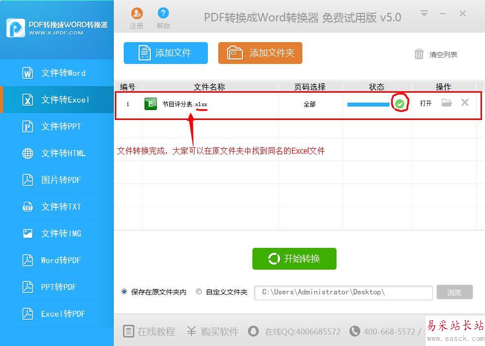 步驟5:迅捷PDF轉換成Word轉換器轉換速度非常快,片刻之后文件即可轉換完成,大家可以看到原來的PDF文件變成了Excel文件。