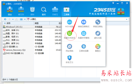 3、點擊中間上面的工具箱,看見沒,批量文件改名,別客氣,點唄!