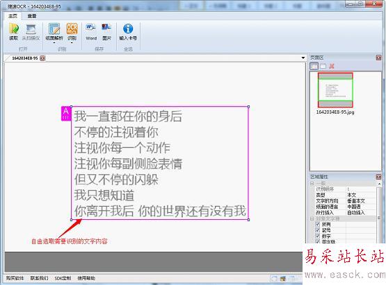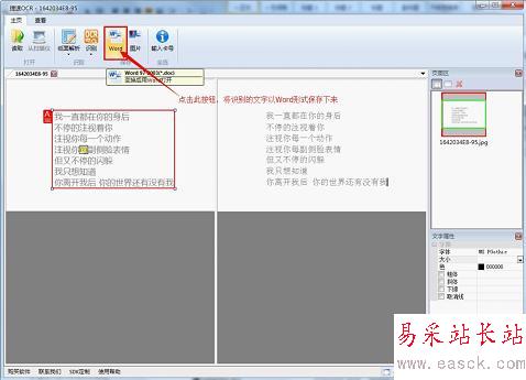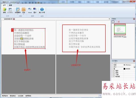 步驟四:點(diǎn)擊“識別”按鈕對選取的文件內(nèi)容進(jìn)行識別,軟件界面右側(cè)就會(huì)顯示該內(nèi)容所識別出來的文字。