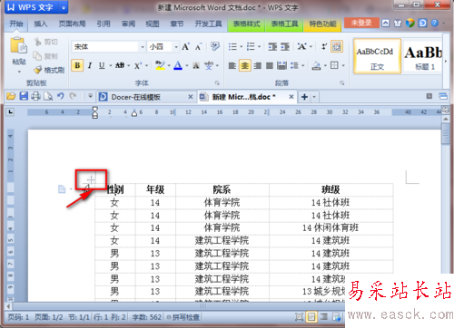 4、我們發(fā)現word文檔的左上角有一個類似加號形狀的東西,我們右擊它,如下: