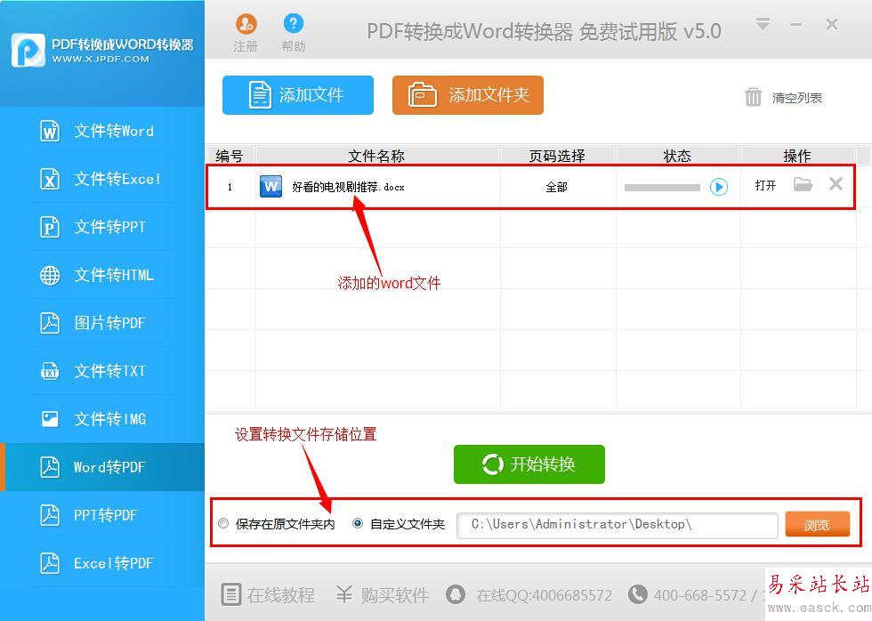 第4步,選擇轉換文件的存儲路徑。默認情況下軟件是將文件保存在桌面上,我們可以將轉換文件設置成保存在原文件夾內,也可以自定義文件夾,自定義文件可以通過“瀏覽”按鈕設置其他的保存位置。