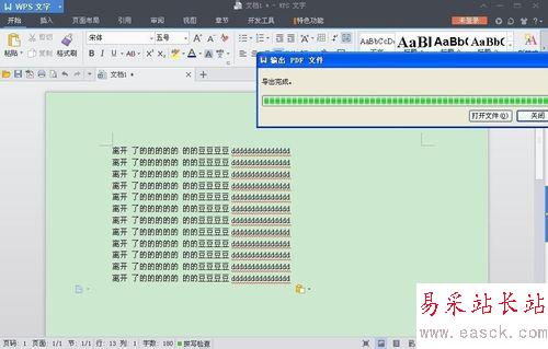 4、如圖1軟件會將我們的文檔直接轉換為pdf格式,我們只需要等待這個轉換過程結束即可,保存完畢后有提示【打開】我們可以通過打開的方式來查看一下保存的pdf格式效果如圖2;