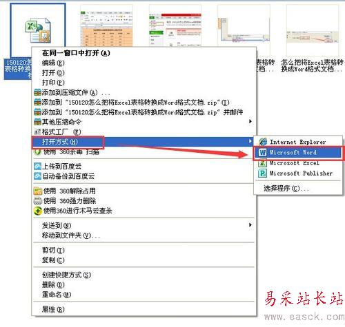 6、鼠標(biāo)右鍵選中新保存的文件,如圖所示在打開方式中選擇Word。