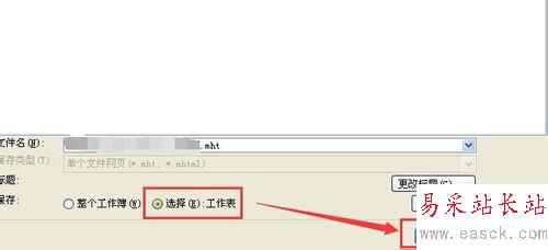 4、選擇“單個文件網(wǎng)頁”保存類型的時候勾選上“選擇(E):工作表”,并點擊保存。