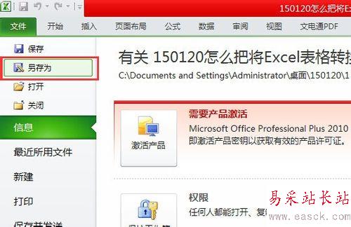 2、點擊左上角“另存為”功能按鈕,將文檔另存為。