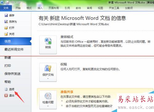 2、在切換的文件菜單欄下方,找到選項(xiàng)按鈕,點(diǎn)擊打開(kāi)