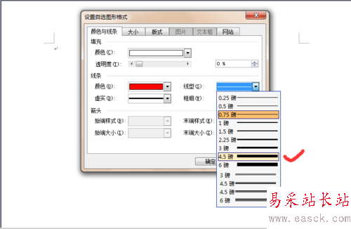 選擇顏色,紅色,如圖所示,選擇線型,寬度單擊確定