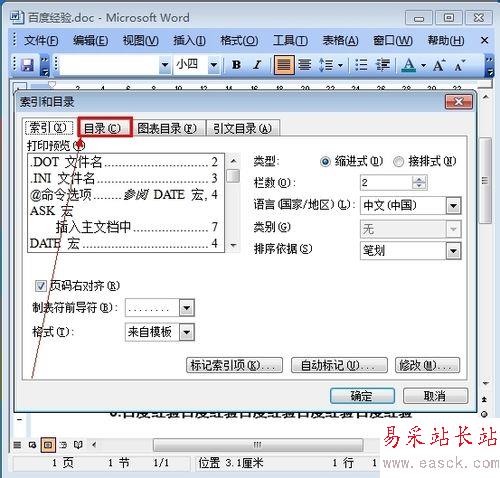 在索引和目錄的窗口里點擊“目錄” 如圖