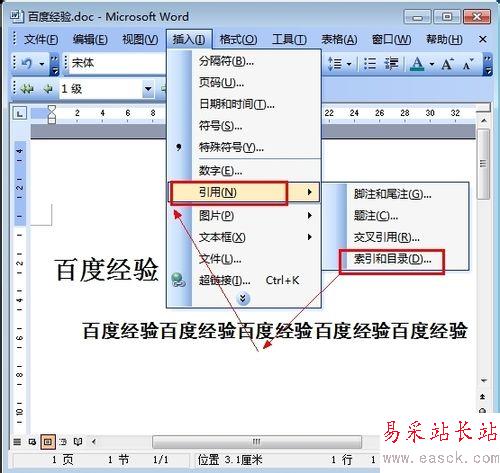 然后點擊“引用”,在點擊“索引和目錄” 如圖